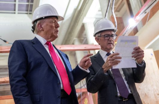 지난해 7월 24일(현지시간) 도널드 트럼프(왼쪽) 미국 대통령과 제롬 파월 연방준비제도(Fed·연준) 의장이 워싱턴DC에서 25억달러 규모의 연준 본부 리모델링 현장을 함께 둘러보고 있다. (사진=AFP) |
