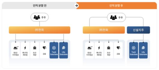 신설법인 한화머시너리앤서비스홀딩스에는 한화비전·한화모멘텀·한화세미텍·한화로보틱스 등 테크 계열사와 한화갤러리아·한화호텔앤드리조트·아워홈 등 라이프 계열사가 속한다. 존속법인에는 한화에어로스페이스·한화오션·한화솔루션·한화생명 등이 속하게 된다.