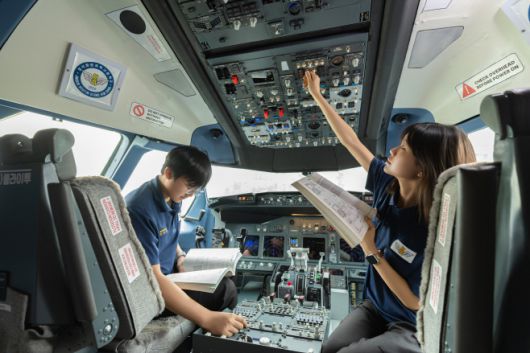 인천의 한 직업계고 학생들이 항공기 조정실에서 실습을 진행하고 있다./인천시교육청 |
