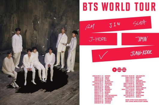 방탄소년단은 14일 0시 글로벌 팬 플랫폼 위버스에 월드 투어 포스터를 게시한 후, 일정을 공개했다. 오는 4월 사흘 동안 펼쳐지는 한국 고양 공연을 시작으로 2027년 3월 마닐라 공연까지가 공개됐다. 북미, 유럽, 남미, 아시아를 도는 이번 투어는 총 34개 도시 79회 공연이 예정돼 있다.