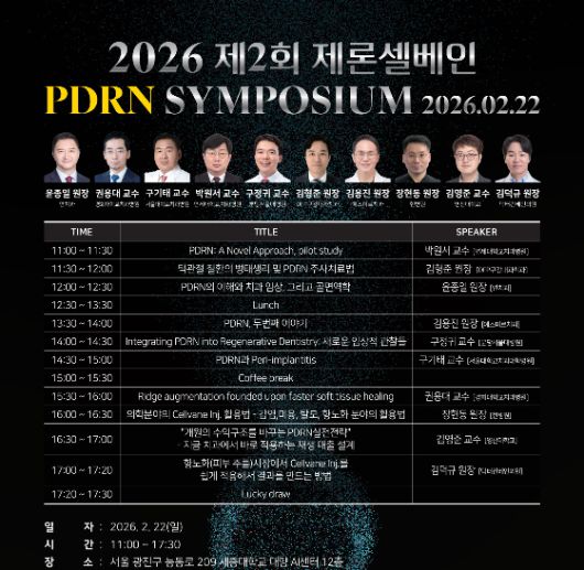 이번 심포지엄에서는 PDRN을 중심으로 치과 임상, 재생의학, 골면역학, 미용 및 항노화 분야까지 폭넓은 임상 적용 사례와 최신 연구 결과를 다룰 예정이다.
