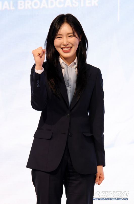 JTBC 2026 밀라노 코르티나 동계올림픽 기자간담회가 14일 서울 여의도 페어몬트 앰배서더에서 열렸다. 김아랑 해설위원이 포토타임을 갖고 있다. 여의도=박재만 기자 pjm@sportschosun.com/2026.01.14/