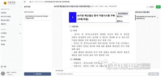 조달청 혁신제품 인정을 받은 '예산결산 분석 자원 AI' 화면. |