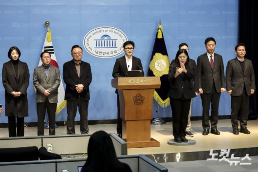국민의힘 한동훈 전 대표가 14일 국회 소통관에서 당 윤리위원회가 본인을 제명 결정한 것과 관련 입장을 밝히고 있다.