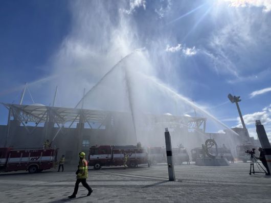 [양양=뉴시스] 지난해 9월23일 양양종합운동장 일원에서 '지진 발생에 따른 다중이용시설 복합 대형 화재' 상황을 가정한 재난대응 안전한국훈련 모습. (사진=뉴시스 DB). photo@newsis.com *재판매 및 DB 금지 |