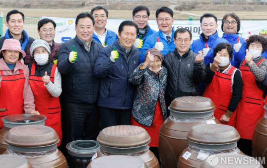 [당진=뉴스핌] 윤창빈 기자 = 정청래 더불어민주당 대표가 14일 충남 당진시 백석올미마을을 방문해 최고위원 및 지역구 의원들 및 마을 할머니들과 기념촬영을 하고 있다. 2026.01.14 pangbin@newspim.com