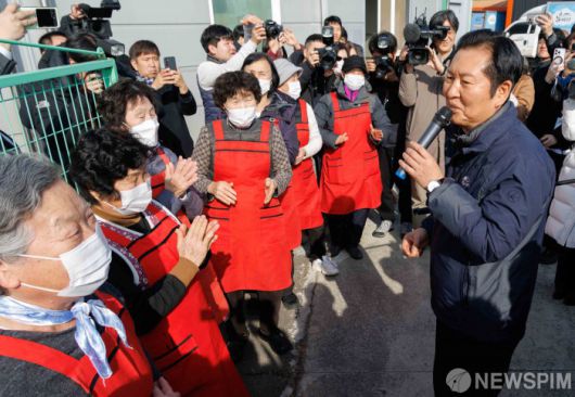 [당진=뉴스핌] 윤창빈 기자 = 정청래 더불어민주당 대표가 14일 충남 당진시 백석올미마을을 방문해 마을 할머니들과 노래를 부르고 있다. 2026.01.14 pangbin@newspim.com