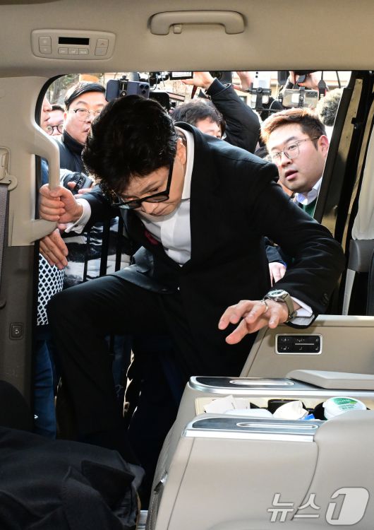 (서울=뉴스1) 신웅수 기자 = 한동훈 전 국민의힘 대표가 14일 서울 여의도 국회 소통관에서 당 윤리위원회 제명 결정에 대한 입장을 밝힌 후 차량에 탑승하고 있다. (공동취재) 2026.1.14/뉴스1