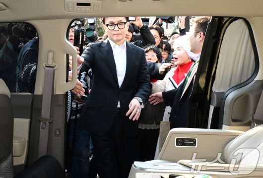 (서울=뉴스1) 신웅수 기자 = 한동훈 전 국민의힘 대표가 14일 서울 여의도 국회 소통관에서 당 윤리위원회 제명 결정에 대한 입장을 밝힌 후 차량에 탑승하고 있다. (공동취재) 2026.1.14/뉴스1