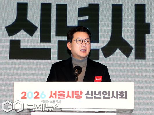 (서울=국제뉴스) 신동욱 국민의힘 최고위원이 14일 오전 서울 여의도 중소기업중앙회에서 열린 2026 국민의힘 서울시당 신년인사회에서 신년사를 하고 있다./사진=이용우 기자