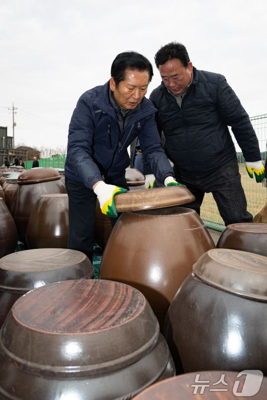 (당진=뉴스1) 유승관 기자 = 정청래 더불어민주당 대표가 14일 충남 당진시 백석올미마을기업을 방문해 장독 옮기기 작업을 하고 있다. 오른쪽은 어기구 농해수위원장. 2026.1.14/뉴스1fotogyoo@news1.krCopyright ⓒ 뉴스1. All rights reserved. 무단 전재 및 재배포, AI학습 이용 금지.