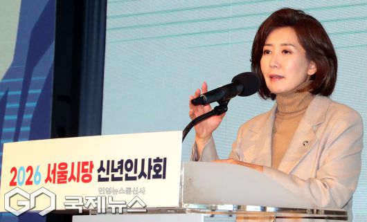 (서울=국제뉴스) 나경원 국민의힘 의원이 14일 오전 서울 여의도 중소기업중앙회에서 열린 2026 국민의힘 서울시당 신년인사회에서 신년사를 하고 있다./사진=이용우 기자