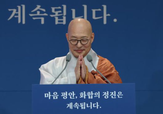 조계종 총무원장 진우스님이 14일 서울 종로구 한국불교역사문화기념관에서 신년 기자간담회를 하고 있다. [사진=연합뉴스] |