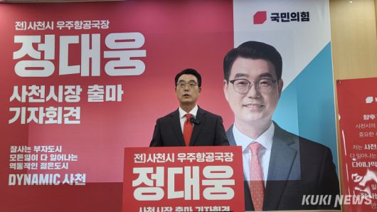 정대웅 사천시 전 우주항공국장이 14일 오후 2시 사천시청 브리핑룸에서 기자회견을 열고 사천시장 출마를 공식 선언했다.