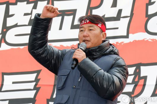 [서울=뉴스핌] 류기찬 기자 = 양경수 민주노총 위원장이 14일 오후 서울 중구 서울지방고용노동청 앞에서 열린 2026 민주노총 신년 결의대회에서 발언을 하고 있다. 2026.01.14 ryuchan0925@newspim.com