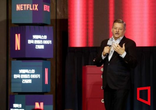 테드 서랜도스 넷플릭스 공동 최고 경영책임자(CEO)가 22일 오전 서울 종로구 포스진스호텔에서 ‘넷플릭스와 한국콘텐츠 간담회’를 앞두고 인사말을 하고 있다. 사진=사진공동취재단 |