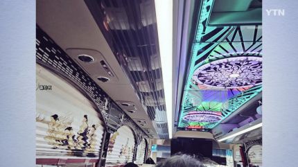이렇게 천장이 오색빛깔 무늬로 독특한 관광버스가 대체 버스로 투입됐다는 사진도 있었는데요.
