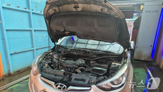 세차 중 보닛에서 연기가 나는 것을 본 60대 여성 운전자가 자력 탈출해 인명피해는 없었다.