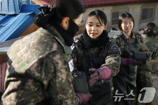 (대전=뉴스1) = 국군간호사관학교 생도들이 14일 대전 천동 일원에서 연탄 나눔 봉사활동을 하고 있다.(국군간호사관학교 제공. 재판매 및 DB금지) 2026.1.14/뉴스1