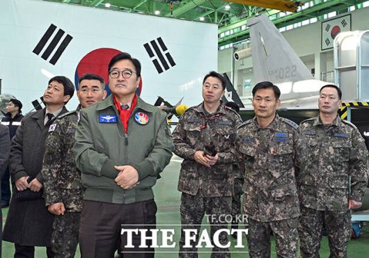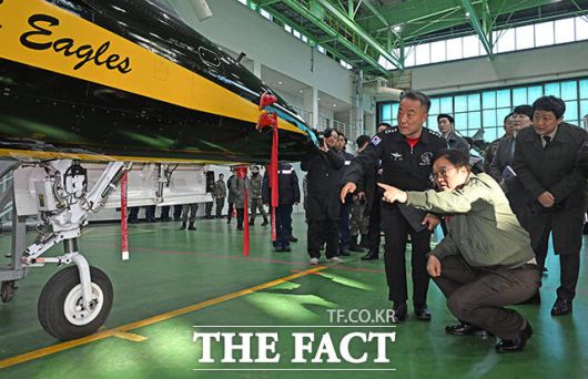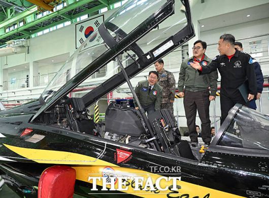 [더팩트ㅣ배정한 기자] 우원식 국회의장이 14일 강원도 원주시 제8전투비행단을 위문 방문, 특수비행팀 블랙이글스의 T-50B에 탑승해 포즈를 취하고 있다.