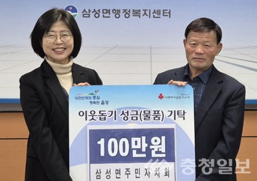 삼성면주민자치회(회장 이양석)는 이날 이웃돕기 성금 100만원을 삼성면행정복지센터에 기탁했다.
