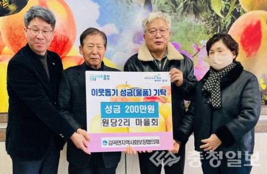 또한 감곡면 원당2리 마을회(이장 김익환)에서도 이날 감곡면행정복지센터를 방문해 이웃돕기 성금 200만원을 감곡면지역사회보장협의체에 기탁했다.