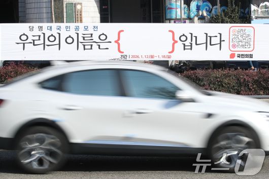 (대구=뉴스1) 공정식 기자 = 국민의힘이 6·3 지방선거를 앞두고 5년 반 만에 당명 개정에 나선 가운데 14일 대구 도심에 대국민 공모전 '우리의 이름은 입니다'를 알리는 현수막이 설치돼 있다. 국민의힘은 지난 12일 책임당원 68%의 찬성에 따라 당명 개정 절차에 공식 착수한다고 밝혔다. 공모전은 18일까지 진행된다. 2026.1.14/뉴스1