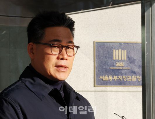 백해룡 경정이 14일 오전 서울 송파구 서울동부지방검찰청 앞에서 세관 마약수사 외압 의혹 합동수사단 파견 종료에 대한 소회를 밝히고 있다.(사진=연합뉴스) |