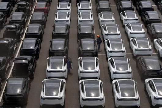 지난해 7월 일본 요코하마의 한 항구에 정차된 테슬라 전기차들. [게티이미지] |