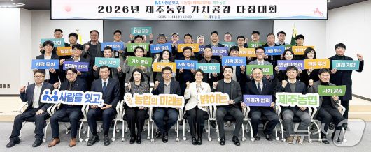 (제주=뉴스1) 오미란 기자 = 농협중앙회 제주본부와 농협은행 제주본부는 14일 '2026년 제주농협 가치공감 다짐대회'를 공동 개최했다고 밝혔다.