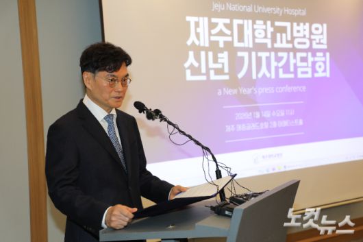 14일 오전 제주시 매종글래드호텔에서 진행된 제주대병원 신년 기자간담회. 이창준 기자 |