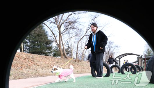 (화성=뉴스1) 김영운 기자 = 14일 경기 화성시 마도면 반려마루 화성에서 청소년 자원봉사자들이 방학을 맞아 보호동물과 교감활동을 하고 있다. 반려마루 화성은 연간 6000여명이 찾아 봉사활동을 진행하며 자원봉사자 모집은 연중 수시로 모집하고 있다. 2026.1.14/뉴스1