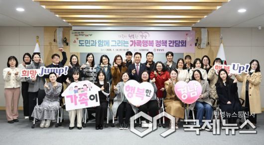 (경남=국제뉴스) 황재윤 기자 = 경남도는 14일 오전 도청 도정회의실에서 신혼부부와 정책 이용자 등 25명이 참석한 가운데 '가족행복 정책간담회'를 열고 도민 의견을 바탕으로 결혼·임신·출산·육아·일 등 생애주기별 가족 지원정책 발굴과 개선 방안을 논의했다.