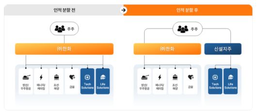 한화는 "존속법인과 신설법인이 시장에서 재평가 받고 경영 효율성이 증대되면 상대적으로 낮은 평가를 받아왔던 ㈜한화의 가치도 상승할 것으로 전망된다"며 "존속법인은 방산, 조선 등 핵심사업에 집중하고 주주환원을 강화함으로써 시장 재평가가 기대된다"고 밝혔다.
