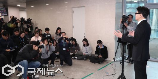 (서울=국제뉴스) 한동훈 전 국민의힘 대표가 14일 서울 여의도 국회 소통관에서 중앙윤리위원회의 자신에 대한 제명 결정과 관련해 취재진 질문에 답하고 있다./사진=이용우 기자