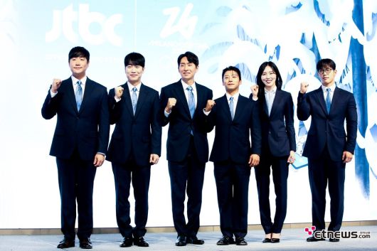 배성재, 성승헌, 이승훈, 곽윤기, 김아랑, 윤성빈이 14일 서울 영등포구 페어몬트 앰배서더에서 진행된 JTBC '2026 밀라노 코르티나 동계올림픽' 기자간담회 일정에 참석했다. 이승훈 기자 (mozart1205@etnews.com) [Copyright © 전자신문. 무단전재-재배포금지]