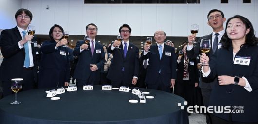 과학기술인·정보방송통신인 신년인사회가 14일 서을 강남구 과학기술회관에서 열렸다. 김민석 국무총리가 건배하고 있다. 이동근기자 foto@etnews.com [Copyright © 전자신문. 무단전재-재배포금지]