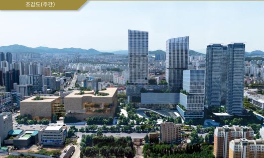 광주신세계가 백화점 인근 종합버스터미널 지역 개발을 통해 추진하고 있는 복합화 시설 '더 그레이트 광주' 조감도./광주신세계 제공 |