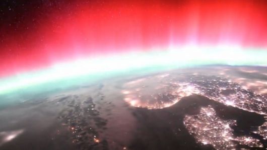 우주비행사 키미야 유이가 국제우주정거장에서 촬영한 오로라 영상의 일부 |