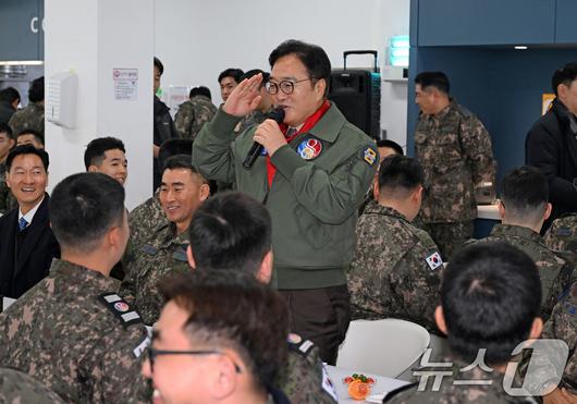 우 의장은 새해를 맞아 이날 제8전투비행단을 찾아 위문금을 전달하고 장병들을 격려했다. 점심 무렵 병영 식당을 찾은 우 의장은 "여러분이 있기 때문에 대한민국 국민이 편안하게 살 수 있다는 생각을 다시 한번 해본다"며 "함께 힘을 모아 훈련하고, 또 든든한 모습을 보니까 마음이 든든하다"고 언급했다.
