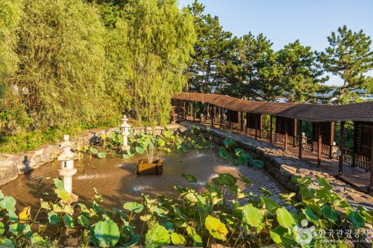 보령시 남포면 남포방조제 중간에 자리한 죽도는 본래 섬이었으나 방조제 완공으로 육지와 연결된 독특한 지형을 이룬다. 대나무 숲이 울창하여 '대섬'이라 불리기도 하는데, 섬 내부에는 고즈넉한 한국식 전통 정원인 상화원이 있다. 고려 후기 정자인 의곡당이 입구를 지키고, 섬 언덕을 따라 1km에 이르는 회랑이 조성되어 있는데, 지붕 있는 회랑 중에서도 그 규모가 인상적이다. 회랑을 걷다 보면 서해 바다 너머 옥마산과 무창포 등 주변 경관이 한눈에 들어온다. 파도 소리가 아스라이 들려오는 고요함 속에서 대나무 잎이 바람에 스치는 소리가 귓가를 간지럽히는 곳이다.