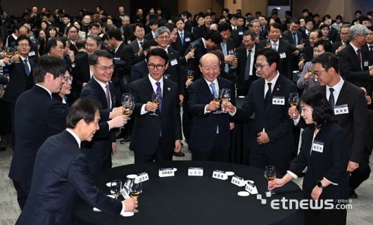 과학기술인·정보방송통신인 신년인사회가 14일 서을 강남구 과학기술회관에서 열렸다. 김민석 국무총리가 참석자들과 건배하고 있다. 이동근기자 foto@etnews.com [Copyright © 전자신문. 무단전재-재배포금지]