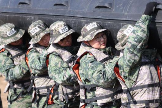 Participants take part in training during the 2026 Winter Marine Corps Camp at the 1st Marine Division in Pohang, North Gyeongsang Province, on Jan. 13, 2026. Yonhap |