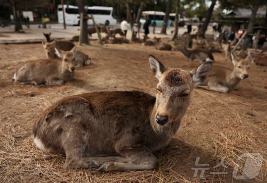 (나라 로이터=뉴스1) 권영미 기자 = 14일 일본 서부 나라시에 위치한 나라 공원에서 야생 사슴들이 휴식을 취하고 있다.2026.01.14. ⓒ 로이터=뉴스1 Copyright ⓒ 뉴스1. All rights reserved. 무단 전재 및 재배포, AI학습 이용 금지.