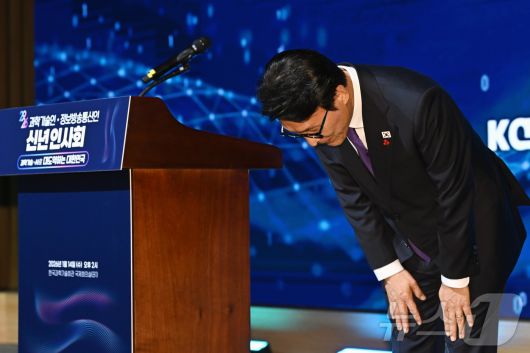 (서울=뉴스1) 김명섭 기자 = 김민석 국무총리가 14일 서울 강남구 과학기술회관에서 열린 과학기술인•정보방송통신인 신년인사회에서 참석자들을 향해 인사하고 있다.(공동취재) 2026.1.14/뉴스1urodoct2@news1.krCopyright ⓒ 뉴스1. All rights reserved. 무단 전재 및 재배포, AI학습 이용 금지.
