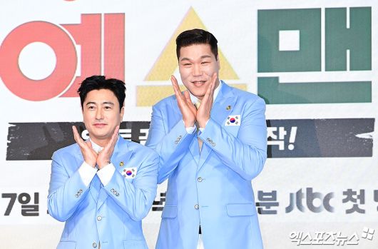 (엑스포츠뉴스 박지영 기자) 14일 오후 서울 여의도 페어몬트 앰버서더 서울에서 JTBC 새 예능 프로그램 '예스맨' 제작발표회가 열렸다. 이날 제작발표회에 참석한 안정환, 서장훈이 포토타임을 갖고 있다. 박지영 기자 jypark@xportsnews.com