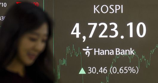 이날 코스피는 전 거래일보다 30.46포인트(0.65%) 상승한 4723.10에 장을 마쳤다. 전일 대비 0.16% 하락한 4685.11에 출발한 코스피는 개장 직후 상승 반전되며 4700선에 안착했다. 9거래일 연속 사상 최고치를 경신하고 있는 것이다. 기관이 6023억원을 순매수한 반면, 개인은 4327억원, 외국인은 3870억원을 순매도했다.