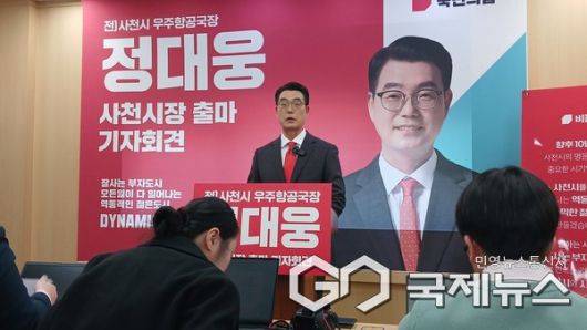 (사천=국제뉴스) 구정욱 기자 = 정대웅 사천시 전 우주항공국장이 14일 오후 2시 사천시청 브리핑룸에서 기자회견을 열고 사천시장 출마를 공식 선언했다.