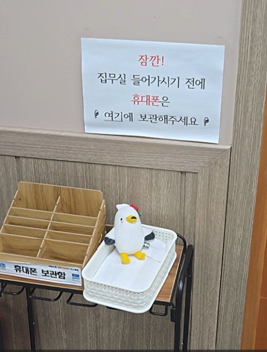 경남 통영시장실 앞 비서실에 설치된 휴대전화 보관함. 통영시민참여연대 제공 |