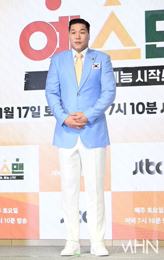 (MHN 이현지 기자) 전 농구선수 서장훈이 14일 오후 서울 영등포구 페어몬트 앰배서더 서울에서 진행된 JTBC의 신규 예능 '예스맨' 제작발표회에 참석해 포토타임을 갖고 있다.